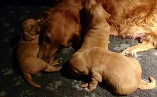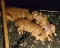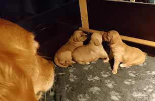 Den 10 april 2018 föddes 3 efterlängtade valpar, 1 tikar och 2 hanar. Här är de alldeles nya!