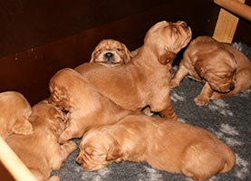 Den här veckan får vi och valparna besök av flera av de blivande valpägarna. Vi är glada och tacksamma att vi har fått så bra valpköpare. Det känns tryggt att veta att valparna kommer till bra hem och att vi kommer att kunna följa dem framöver. Tyvärr räcker inte valparna alla gånger till alla som är intresserade. Vi försöker placera dem på det sätt som vi upplever blir bäst och hoppas förstås att det blir rätt i det långa loppet. Det är inte roligt att göra någon besviken, men vi hoppas att de som inte får någon valp nu snart hittar sin valp.