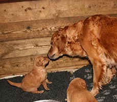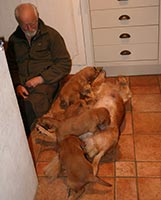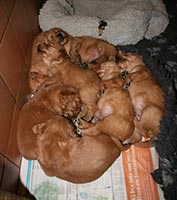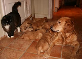 Pappa till den här kullen bor i England och vi har haft en kull tidigare efter honom med vår Maybe, mor till Tissel. Resultatet, X-kullen, blev mycket lyckat och vi är väldigt nöjda med hur den kullen har utvecklats. Kvalitén på sperman var så bra att vi inte behövde utnyttja allt till Maybe och därför sparade vi hälften i en spermabank för att kunna använda i framtiden till en passande tik. Nu har vi utnyttjat den möjligheten och Tissel inseminerades med den frysta sperman i september.