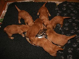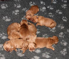 Tissel har väldigt gott om mat och hon är också mycket duktig med sina små. De blir väl omhändertagna! På bilderna nedan är valparna precis en vecka. De har en härlig mörk färg och de ska bli så spännande att få följa dem.