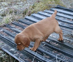 Sista veckan innan valparna börjar flytta! Under denna vecka är det mycket som ska hinnas med och förberedas inför flytten. Vi gör diverse tester för att se hur valparna reagerar i olika situationer. Bland annat har varje valp fått prova att gå på plåtar, vi har utsatt dem för olika ljud, de har testat att apportera olika föremål, osv. Alla valparna har klarat sina tester utmärkt. Det har inte varit helt lätt att välja vilken valp som ska till vilket hem. Vi har haft tur med vädret så det har gått att vara ute kortare stunder trots att det är mitt i vintern. I slutet av veckan blev dags för besiktning, vaccination och id-märkning. Besiktningen gick bra och hela kullen fick beröm. Här kommer en del av de bilder vi tog sista veckan.